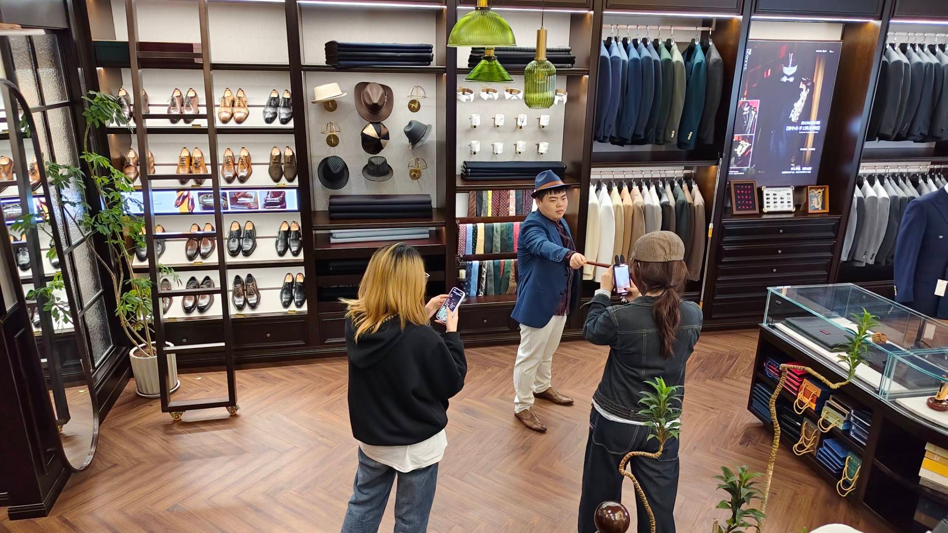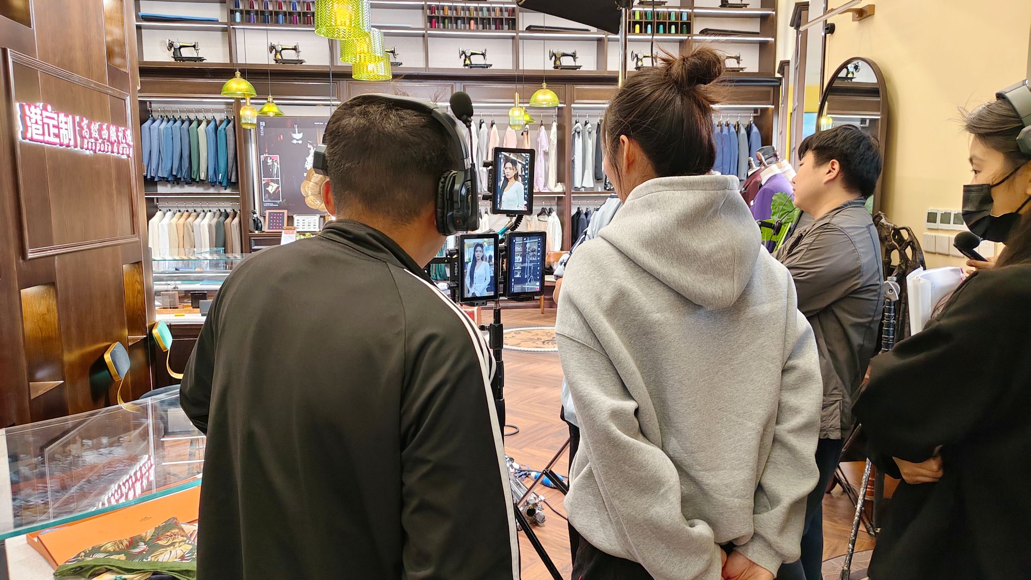 实习过程中企业导师还结合学生专业情况组织学生现场参与观摩麦芽公司短剧制作,同学们有序进入拍摄现场,从剧组工作人员搭建场景、调试灯光,到导演指导演员走位、调整镜头角度,再到服化道团队结合剧情需求挑选港定制西服搭配角色造型,每一个环节都成为鲜活的 “实践课堂”。过程中,同学们认真记录拍摄流程细节,主动向剧组摄像师请教 “如何通过镜头语言突出场景与产品的融合度”,向道具组了解 “商业空间如何适配影视拍摄需求”;这场意外的观摩经历,不仅让同学们直观接触到影视制作的实战流程,更启发了大家将不同领域的专业方法迁移到自身实习任务中,为后续完成项目注入了新的思路。