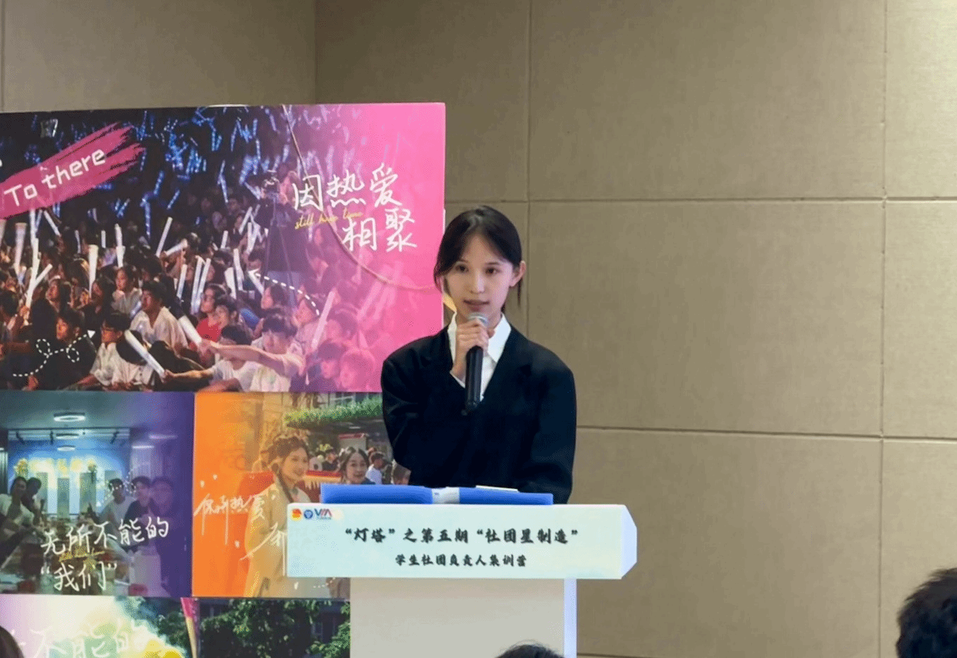 美食协会学生社团负责人许浩明同学作为2025-2026学年新任学生社团负责人,分享了他的见解与展望。他结合自身实践,阐述了对于社团未来发展的规划与思考,并号召全体学员珍惜此次“灯塔”之第五期社团星制造学生社团负责人集训营提供的宝贵平台,主动学习实践,将社团打造成有活力与吸引力的校园文化名片。