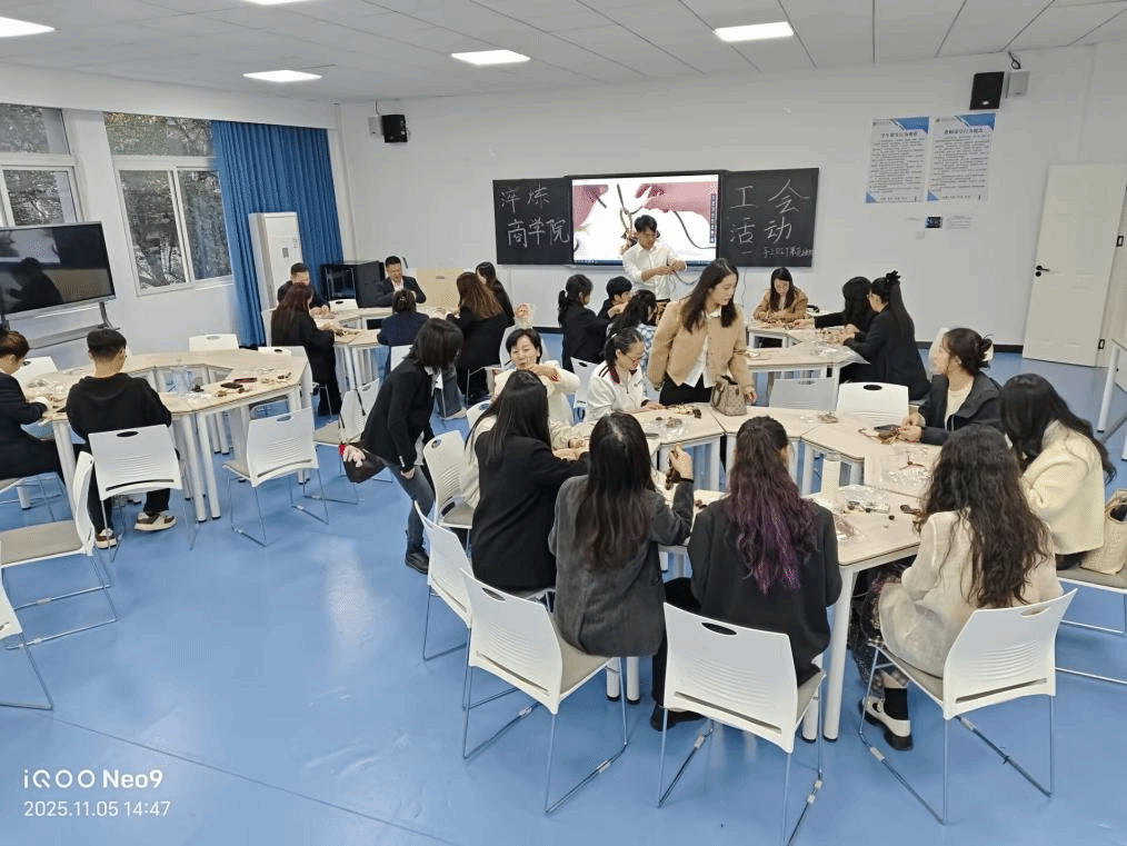 11月5日下午,工会第九小组淬炼商学院在教室开展“金秋织梦・非遗传薪”主题工会活动,为教职工带来一场非遗手工盛宴。