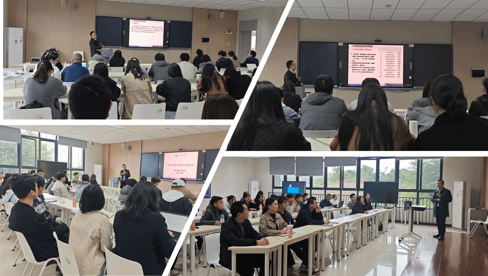讲座上,江教授系统梳理了机械工程专业自1935年工学院创立以来的发展脉络,重点介绍了近年来围绕“新工科”理念与“大工程观”所开展的专业建设与改革实践。江教授指出,机械工程专业以“服务国家战略、面向新质生产力”为定位,构建了以“毕业要求—课程体系—教学实施—持续改进”为主线的OBE人才培养机制,通过融入跨学科项目、虚实结合实验、学科竞赛等多元模式,强化学生工程实践与创新能力。