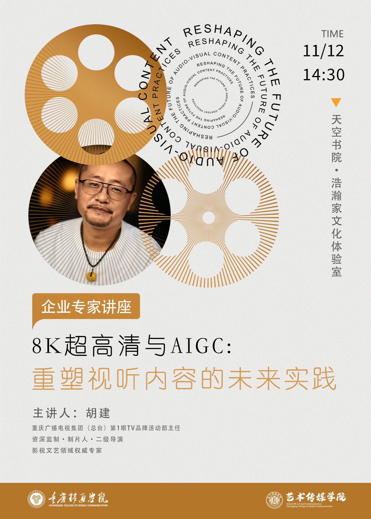 为紧跟传媒行业技术发展前沿,拓展师生专业视野,深化产教融合,重庆移通学院艺术传媒学院于11月12日特邀重庆广播电视集团(总台)第1眼TV品牌活动部主任、8K超高清应用中心负责人胡建,来开展题为《8K超高清与AIGC重塑视听内容的未来实践》的专题学术讲座。