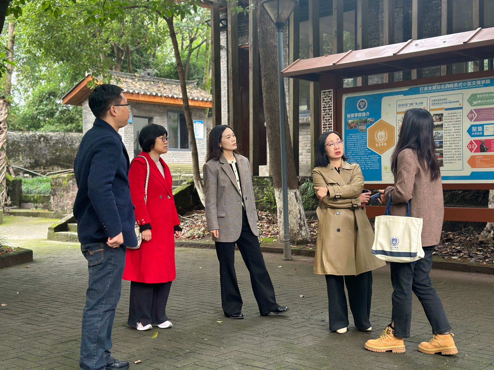 考察期间,在张平校助等人的陪同下,张健梅副总裁和邓丽总经理一行先后参观了远景学院、爱莲书院,实地感受学校特色育人环境与校园文化氛围。在爱莲书院,张平校助详细介绍学校整体发展情况,并重点解读“四位一体双院制”人才培养模式的特色内涵;该模式通过系统整合专业教育、通识教育、商科教育、完满教育四大模块,以“书院制+学院制”双院协同为载体,打破传统教育壁垒,形成“教、学、练、育”一体化体系。这一模式精准指向“培养通专业、善管理的复合性高素质应用型人才”目标,与当前企业对高素质经营管理人才的核心需求高度契合,为后续产教融合奠定了理念基础。