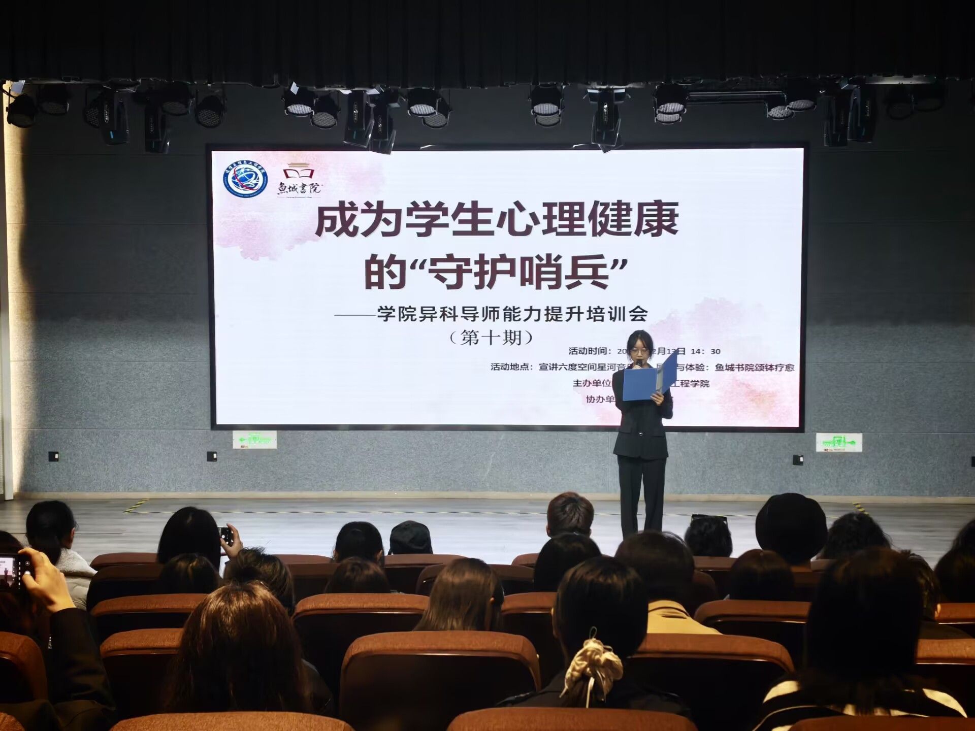为全面提升异科导师对学生心理问题的识别、应对与干预能力,强化全员心理育人意识,11月13日下午,通信与信息工程学院联合鱼城书院开展学院第十期异科导师能力提升培训会。本次培训旨在强化导师对学生恋爱心理问题的识别与干预能力,并进一步梳理异科导师考核体系。