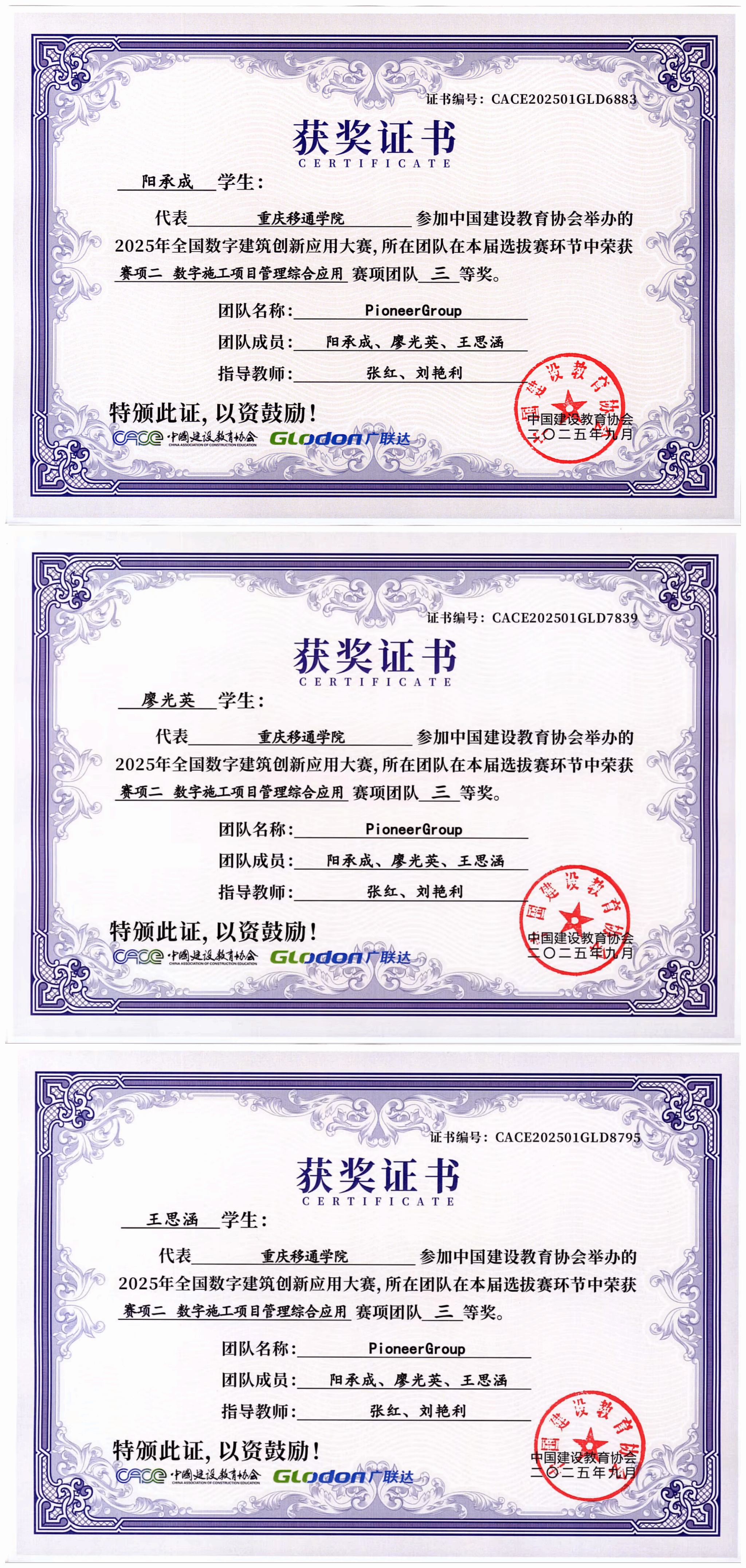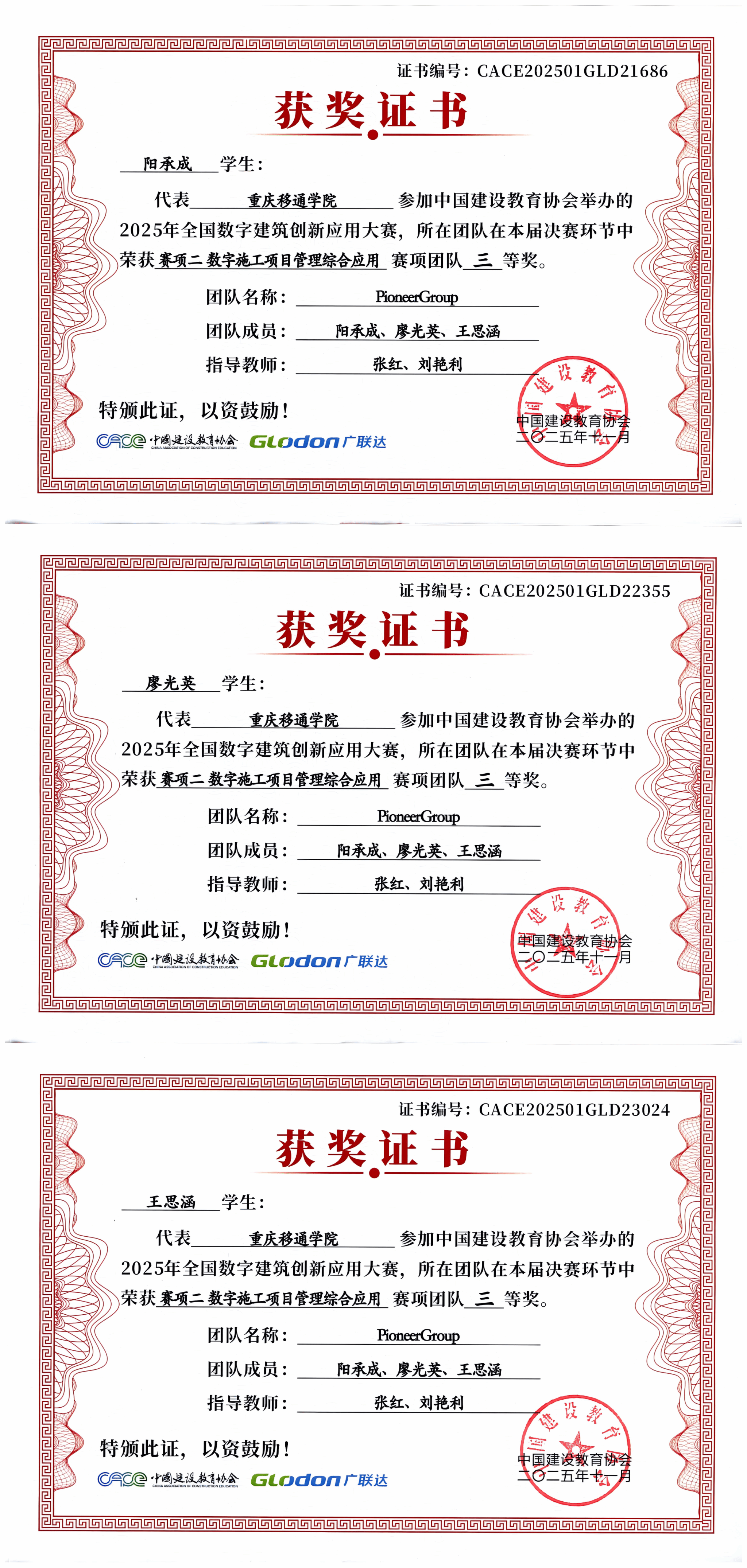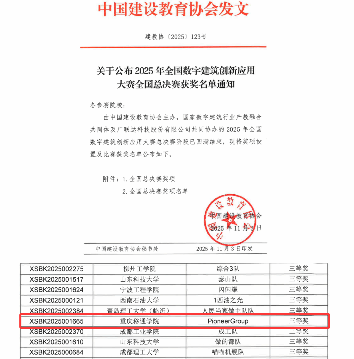 近日,2025年全国数字建筑创新应用大赛全国总决赛落下帷幕,经过校内选拔赛、全国选拔赛及总决赛层层角逐,由张红、刘艳利老师指导的PioneerGroup学生团队,在全国选拔赛中斩获佳绩后秉持不骄不躁的态度持续深耕,最终在全国总决赛中脱颖而出,荣获团体三等奖。