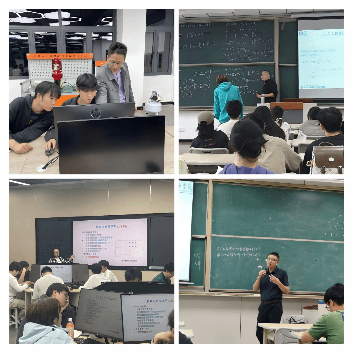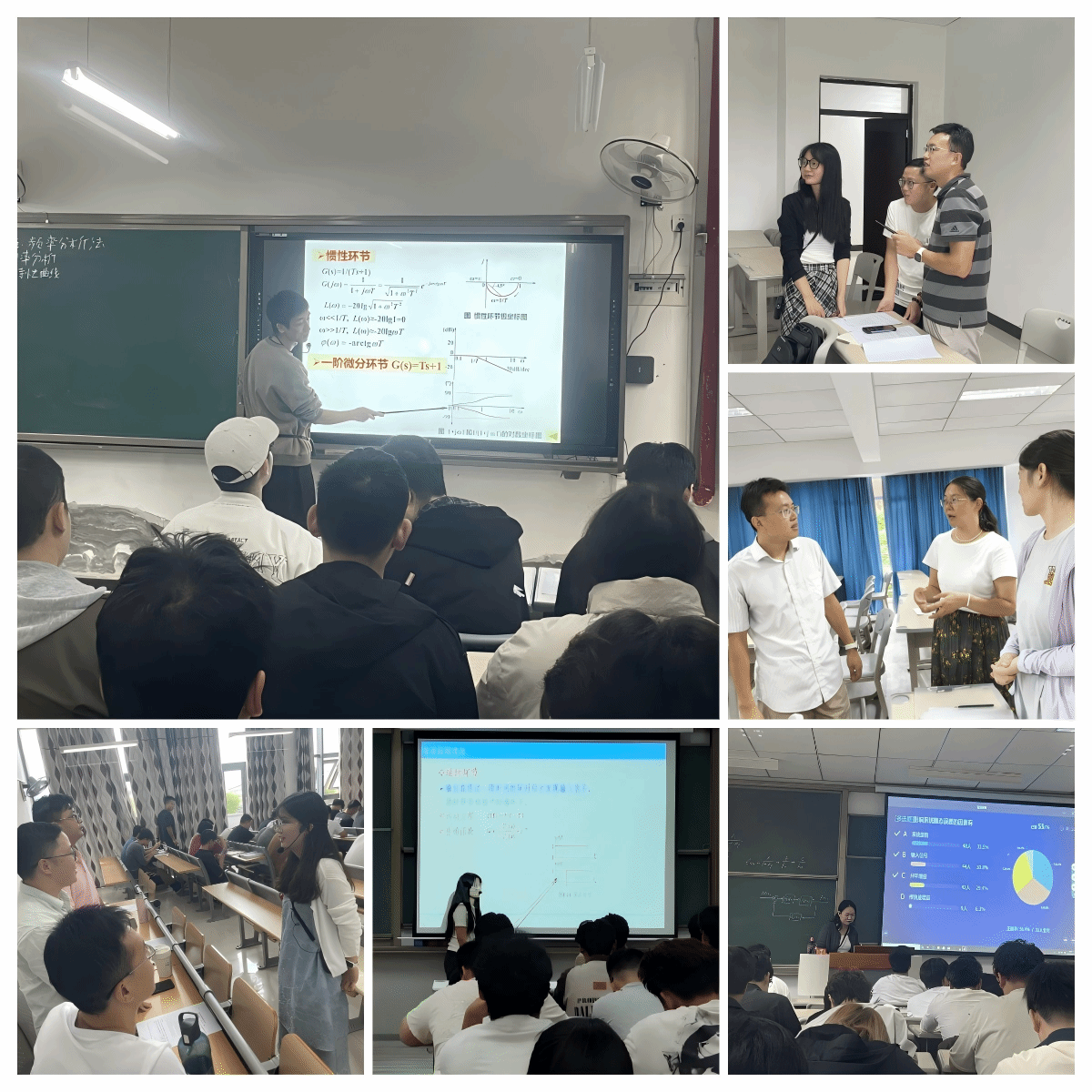 9月18日上午,昌广钧老师在1410教室率先开讲《自动控制原理》,以翻转课堂结合嵌入式教学模式,构建“学、练、思”一体化课堂。同日下午,谭红老师在竹逸A302教室以“双闭环直流调速系统”为主题,通过图示分析、启发提问与思政元素有机融合,实现知识传授与专业素养培养的同步推进。计算方法与物理意义。盛顺利、吴婷、蹇福智、王茜等教师围绕《自动控制原理》的不同章节展开教学:有的以“系统动态结构图的构成与建立”为主线,借助“两级RC电网络建模”实例解析抽象概念;有的从生活共振现象引入,结合频率特性图讲解谐振峰值原理。他们紧扣控制系统“动态响应”这一核心,结合具体输出阐述时域瞬态性能指标,清晰说明了各指标的定义、计算方法及其物理意义。
