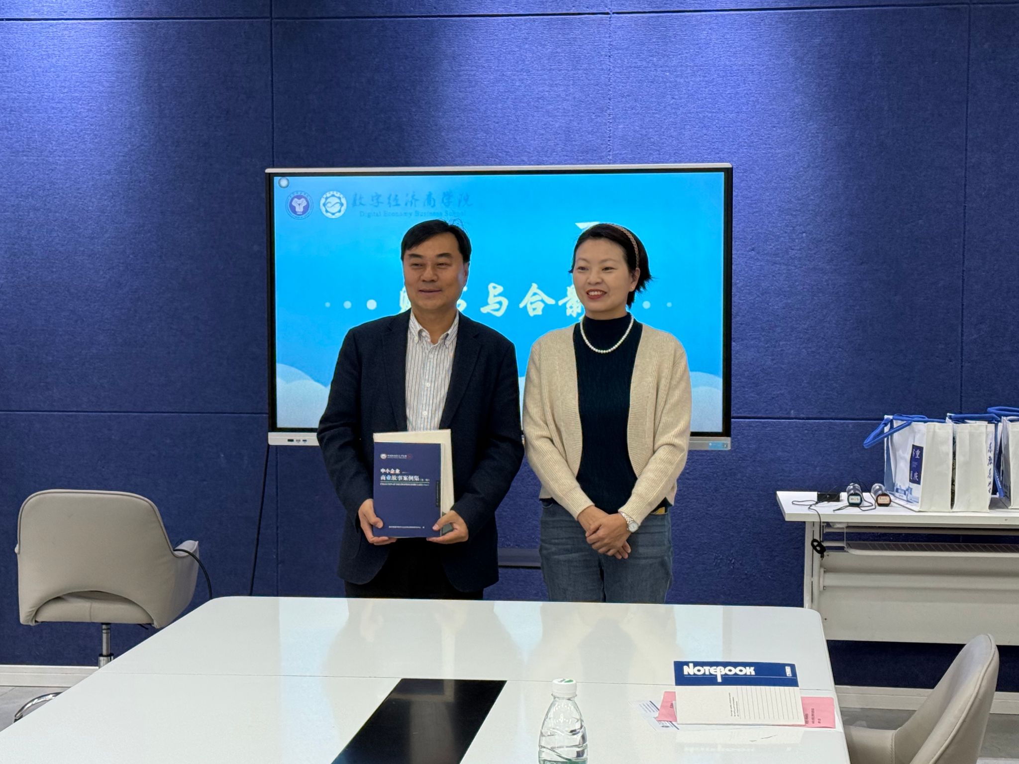 为深化校际合作,推动党建育人与专业建设协同发展,2025年11月13日9:00,数字经济商学院在綦河书院励行会客厅迎来贵州财经大学管理科学与工程学院党委书记胡张林一行,围绕党建育人、数字商科人才培养及产教融合展开系列交流。交流会由数字经济商学院党总支书记任瑞娟、院长刘贵容分别主持相关环节,学院副院长及骨干教师代表共同参与。