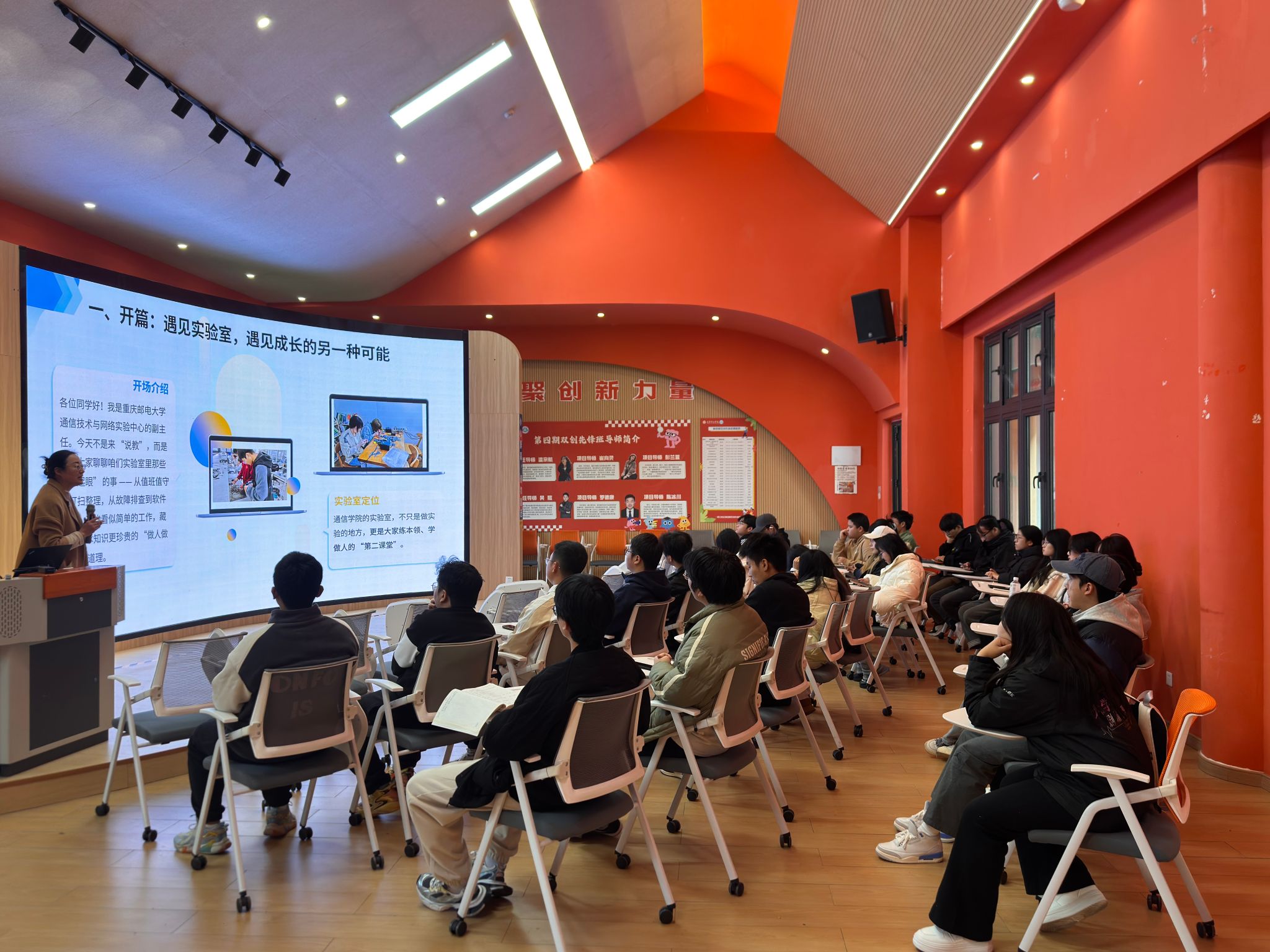 下午14:00,面向学生的“以劳树德,以行践知:在实践中学会做人做事”的专题讲座如期举行。雷芳教授以自身30年教龄积累的育人经验为切入点,将实验室定位为“课堂之外的成长舞台”,用亲切通俗的语言分享了重庆邮电大学师生协同的特色管理模式。