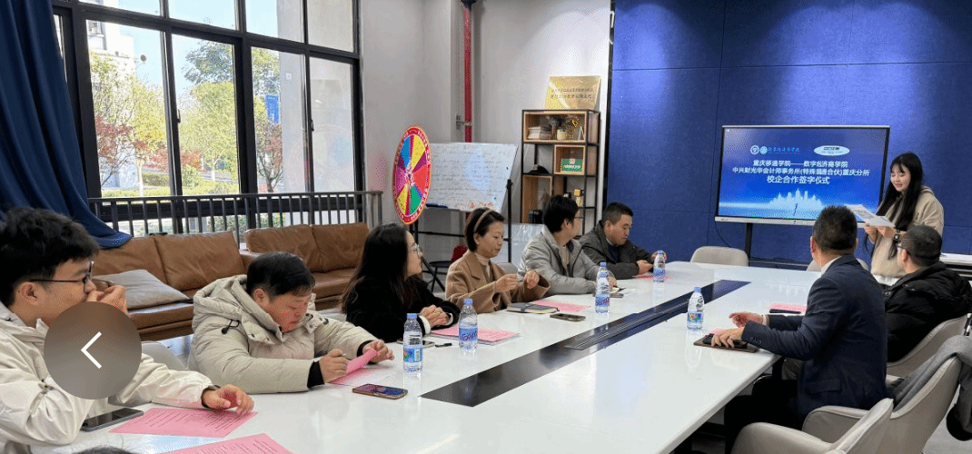 为精准对接数字经济时代下企业对商科人才的复合型需求,深化产教融合育人机制,2025年11月20日上午,重庆移通学院数字经济商学院与中兴财光华会计师事务所(特殊普通合伙)重庆分所在綦河书院励行会客厅成功举行校企合作签约仪式。中兴财光华会计师事务所重庆分所所长祝蔚、咨询项目总监杨洋,重庆移通学院数字经济商学院院长刘贵容、副院长王哲、数字金融教研室主任冉叶虹、用友新道数智运营产业学院负责人乔兴刚、互联网金融专业建设人李娇及数字金融教研室骨干教师共同出席,见证这一重要时刻。