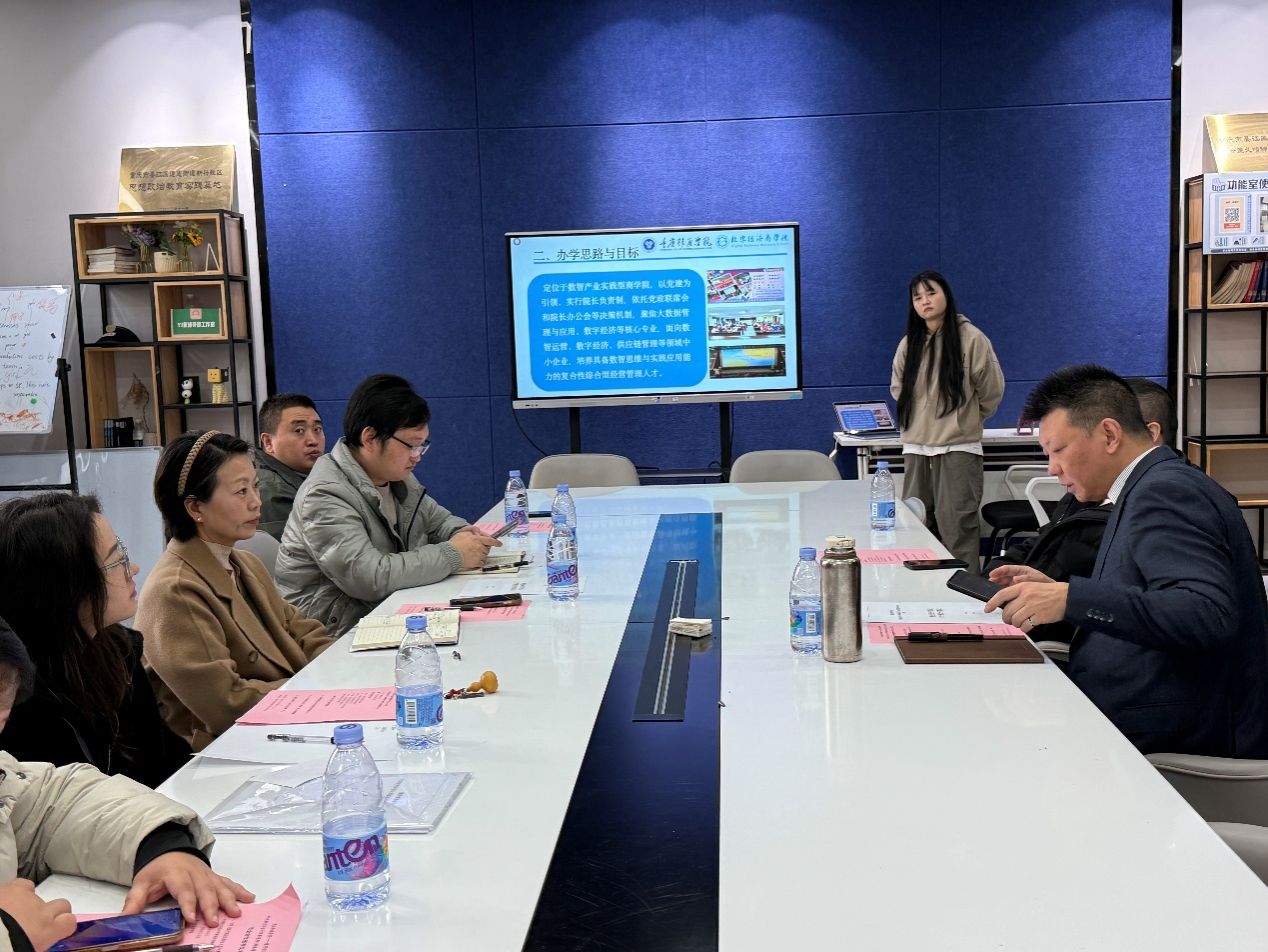 接着,数字经济商学院副院长王哲围绕“1164”数智商科人才培养体系,从专业定位、课程重构、实践教学等方面展开介绍。他强调,学院将以企业真实需求为导向,推动大数据、人工智能等技术与传统商科专业的交叉融合,培养能够胜任数字经济时代岗位要求的高素质应用型人才。