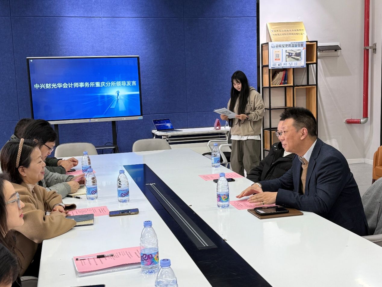 随后,中兴财光华会计师事务所重庆分所所长祝蔚对事务所的业务布局及数字化转型实践作了系统介绍。他表示,当前行业亟需既懂商业逻辑又掌握数据工具的复合型人才,重庆移通学院在数智商科领域的前瞻性布局与事务所的人才需求高度契合。祝所强调,将以“人才培养包”为载体,整合真实项目案例与企业导师资源,参与学院大数据管理、资源数据分析等课程建设,共同打造符合行业需求的商科人才培养闭环。