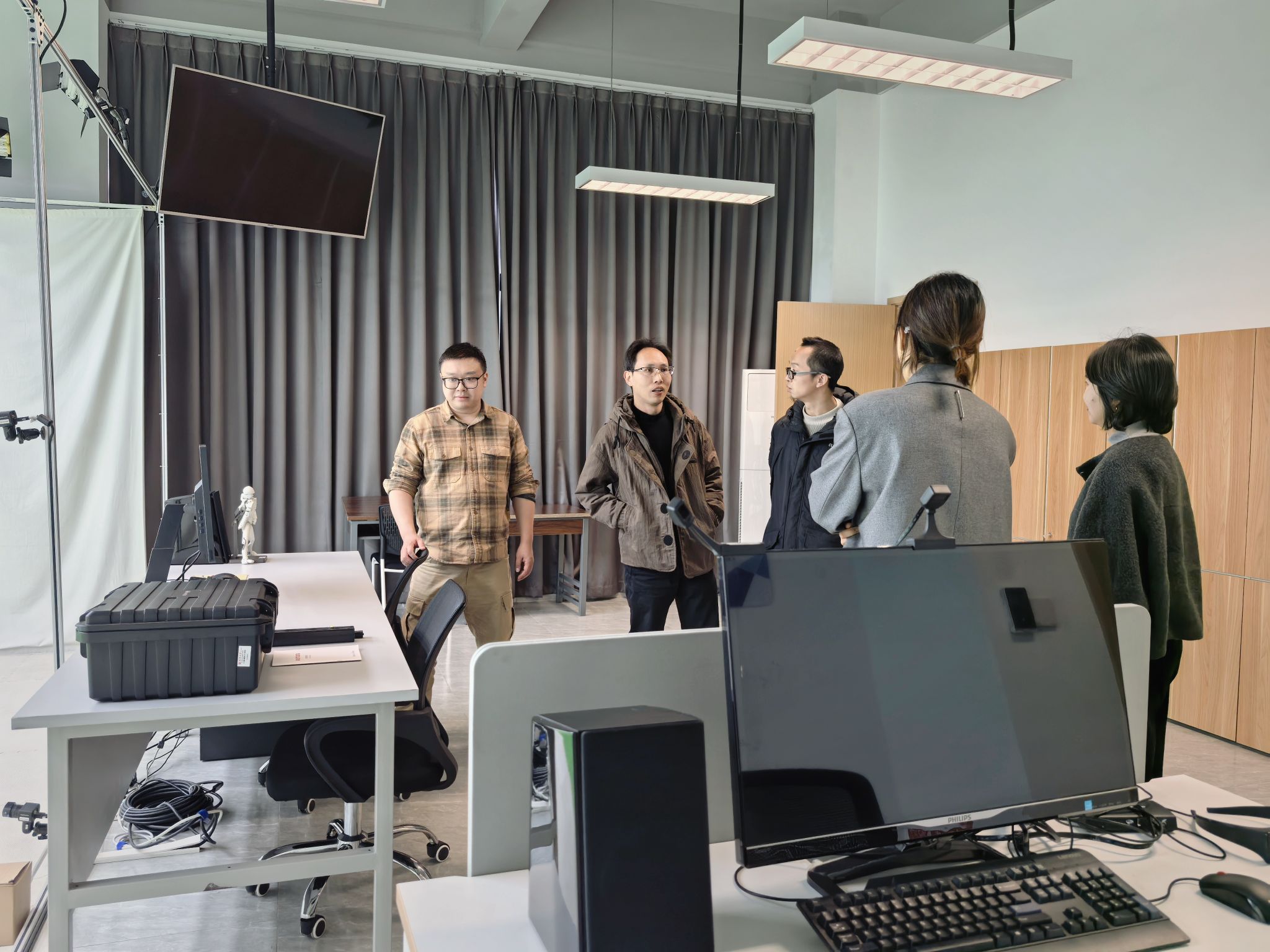 随后,在余洪主任带领下,艺术传媒学院交流团实地参观了学院数字动画实验教学中心。该中心作为四川省立项建设的实验教学平台,建筑面积5446.19平方米,以行业领域需求为指引,坚持动画专业发展与行业发展紧密相连。下设动作捕捉实验室、VR实验室、特效摄影棚、影视后期制作室等18个专业化实验室,配备800余台(套)专业设备,全面覆盖数字媒体艺术创作全流程需求。