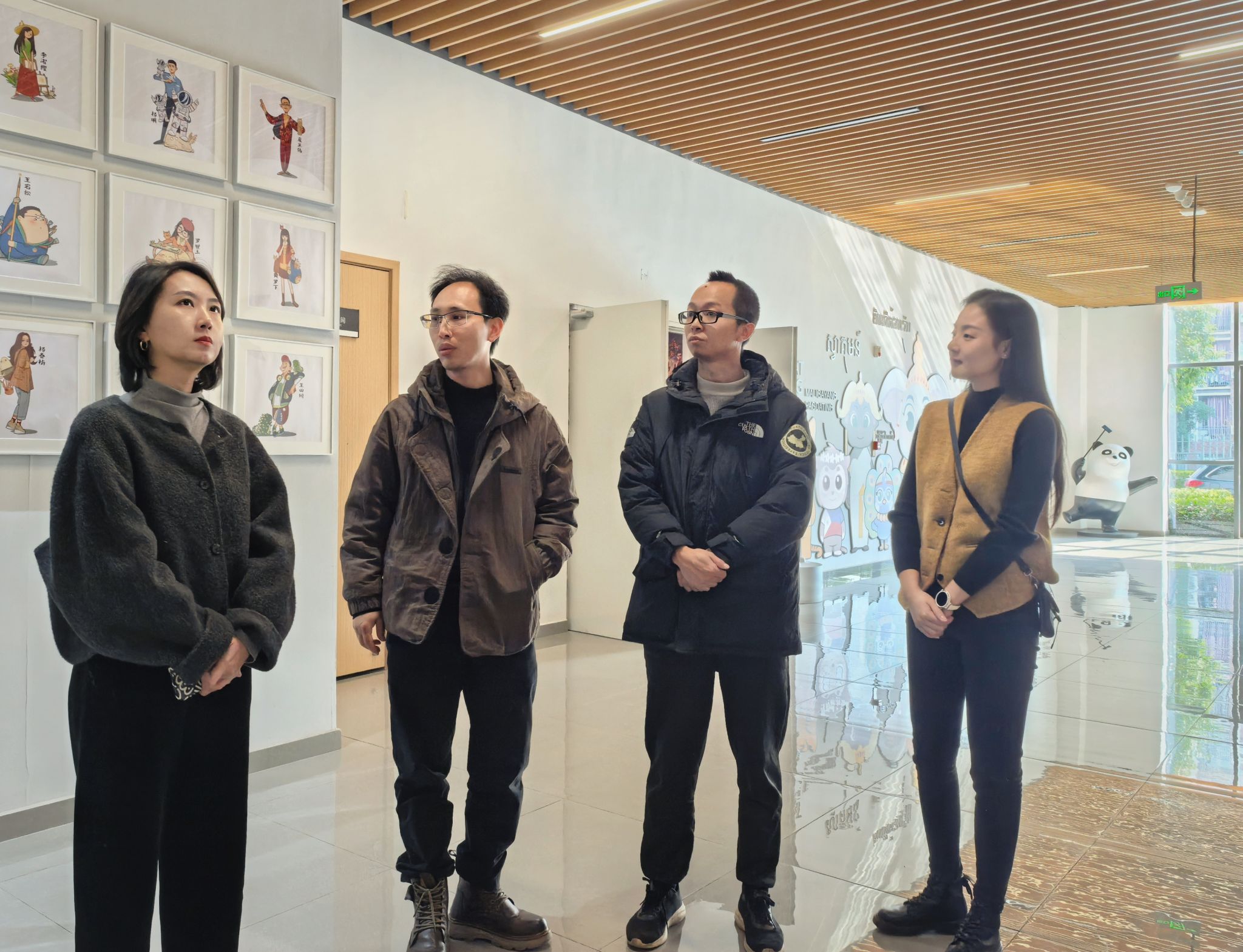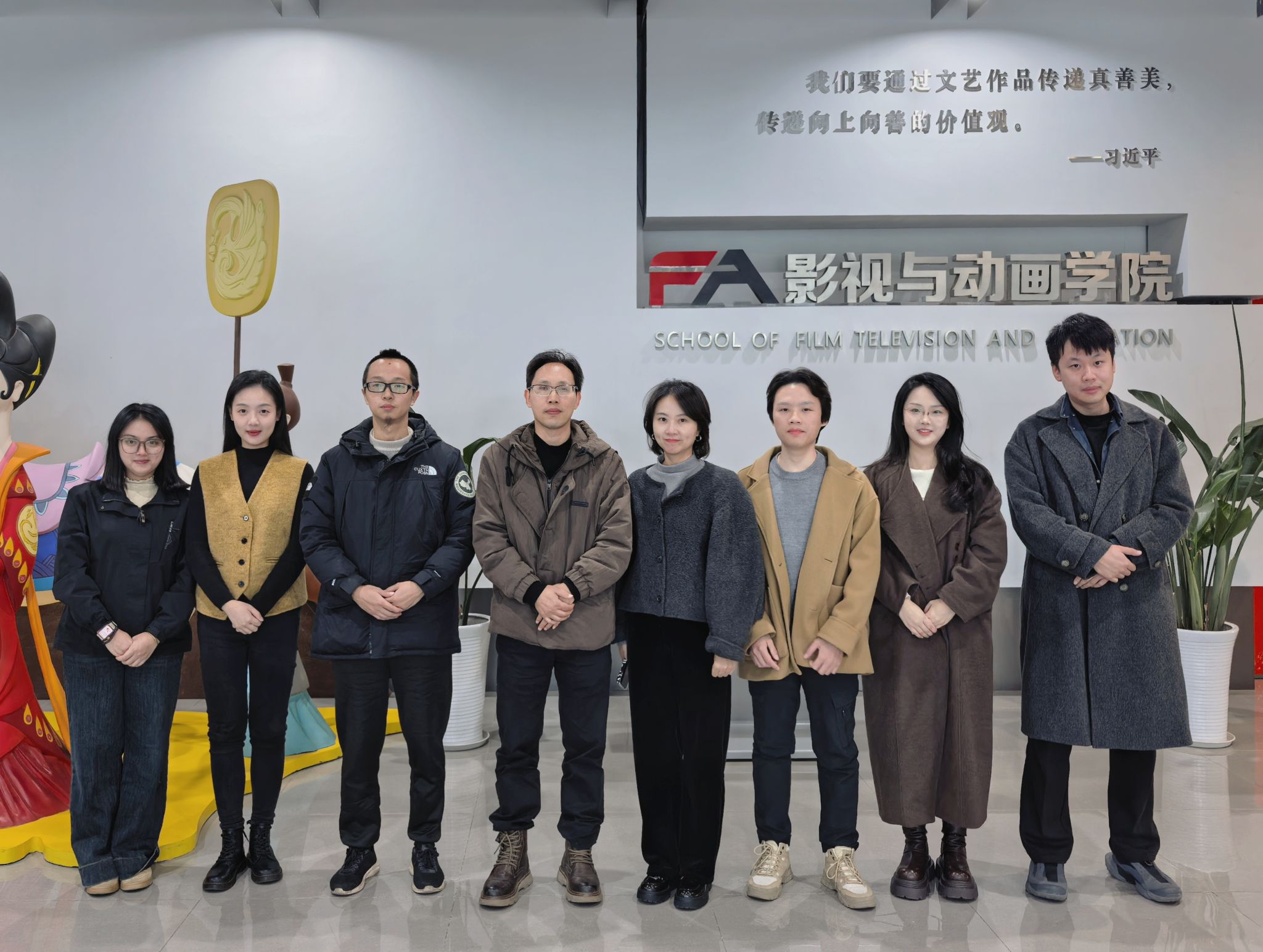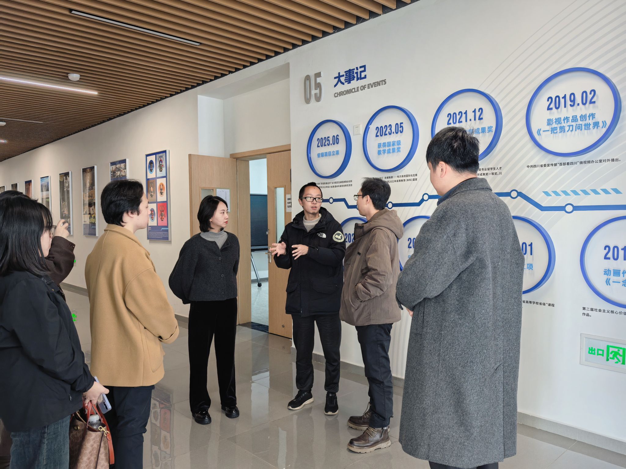 本次考察由艺术传媒学院党总支副书记郭菲带队,数字媒体艺术教研室主任廖国臣、专业基础教研室主任黄芸洁、骨干教师张小露、罗鹏、专业辅导员邓颖蕾参加,成都大学影视与动画学院动画专业主任余洪等出席本次交流会。