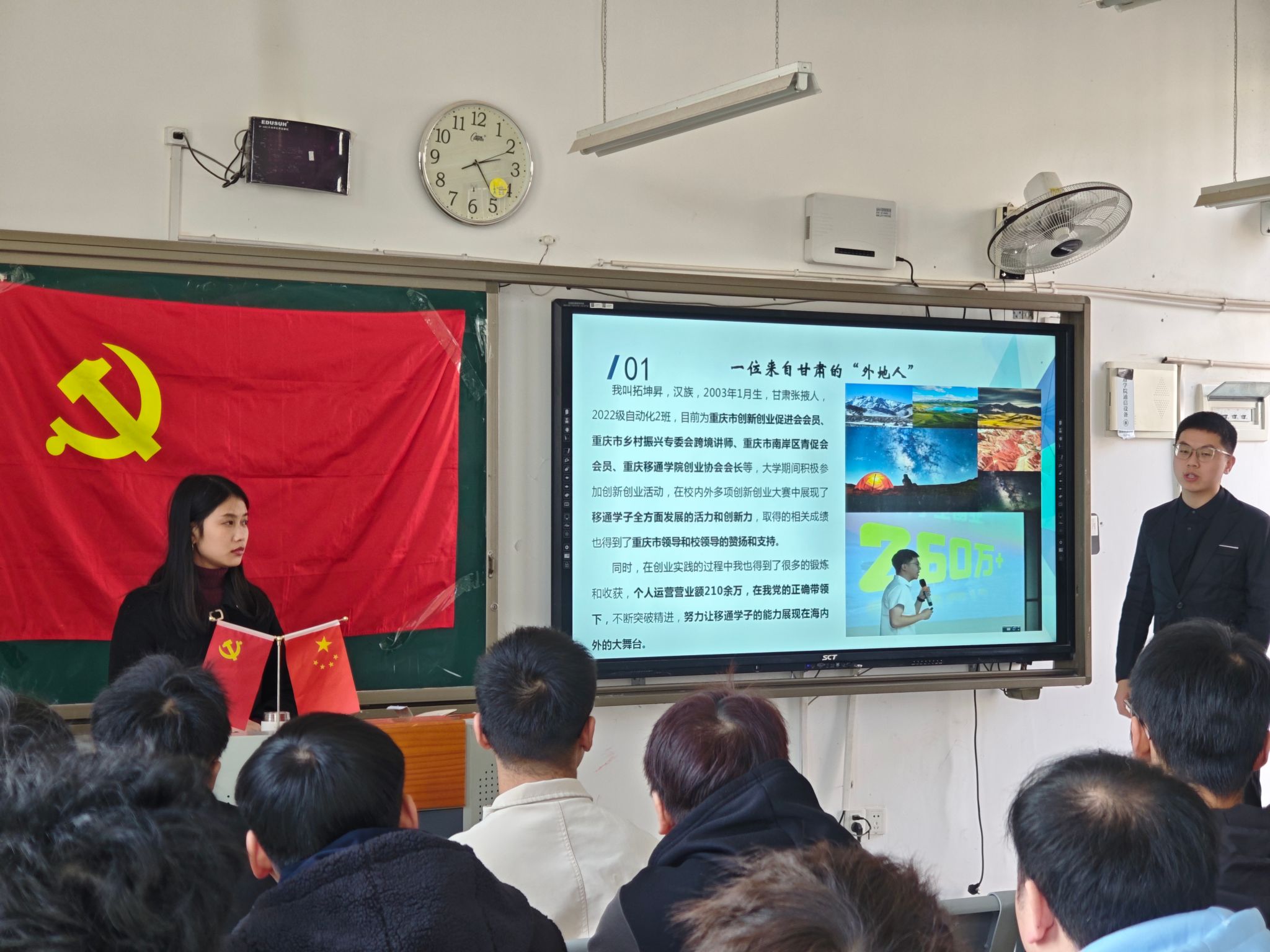 紧接着,拟被接收为中共预备党员的侯洲,陈巧、拓坤昇三位同志依次上台,从个人成长经历、对党的理论学习体会、入党动机等方面作详细陈述。从参加党课培训到参与志愿活动,他们深刻体会到为人民服务不是口号,而是具体行动。