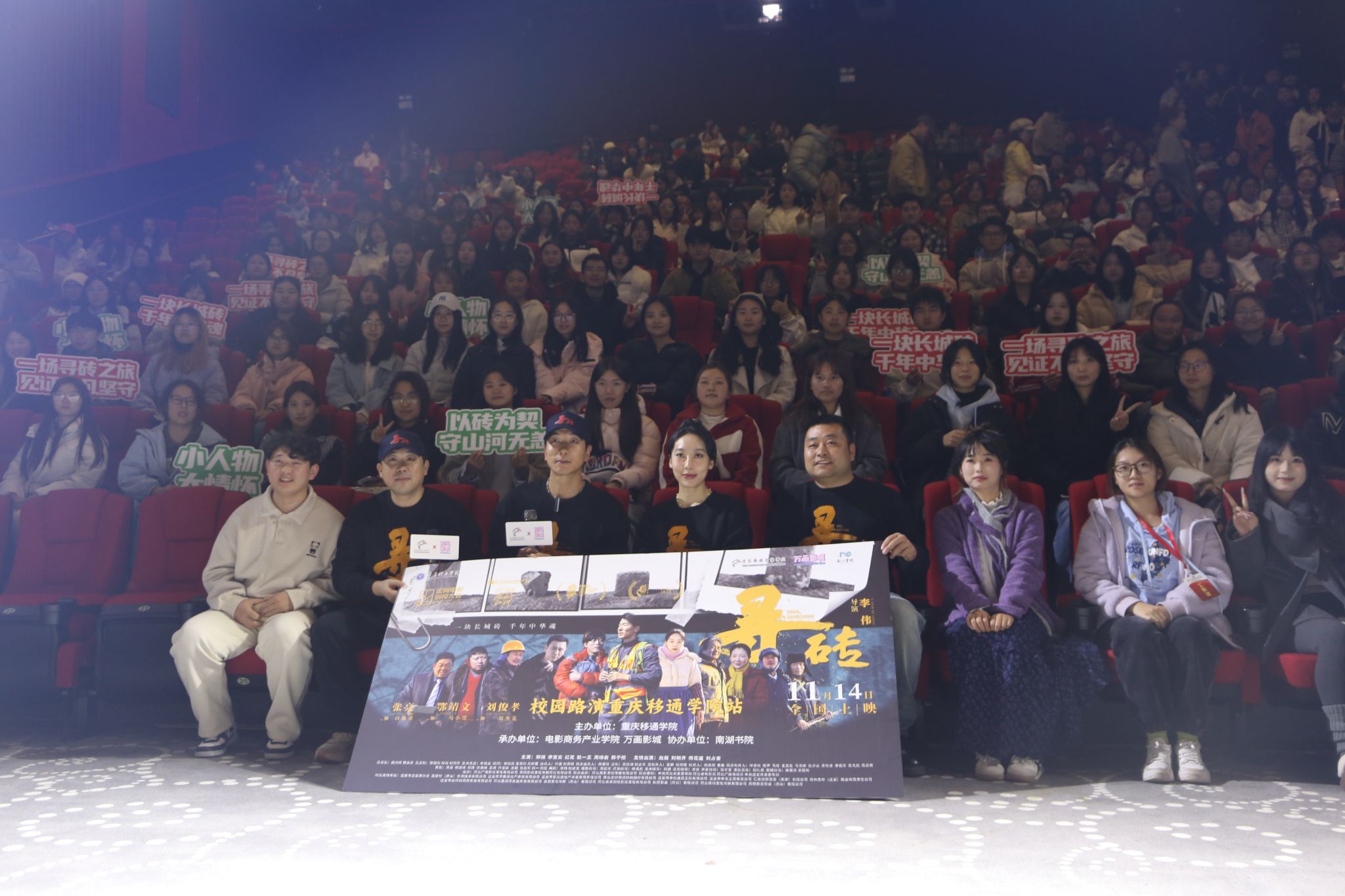 为深化观众对长城保护、文化传承等核心主题的理解,传递正向价值,搭建影片与观众的情感桥梁,激发重庆移通学子守护文化遗产的责任与担当。11月24日,由演员张亮、鄂靖文主演的电影《寻砖》校园路演活动走进重庆市合川区万画影城超幕厅,以光影为桥搭建文化交流平台,与移通师生近距离互动,传递长城文化守护初心与青春正能量。