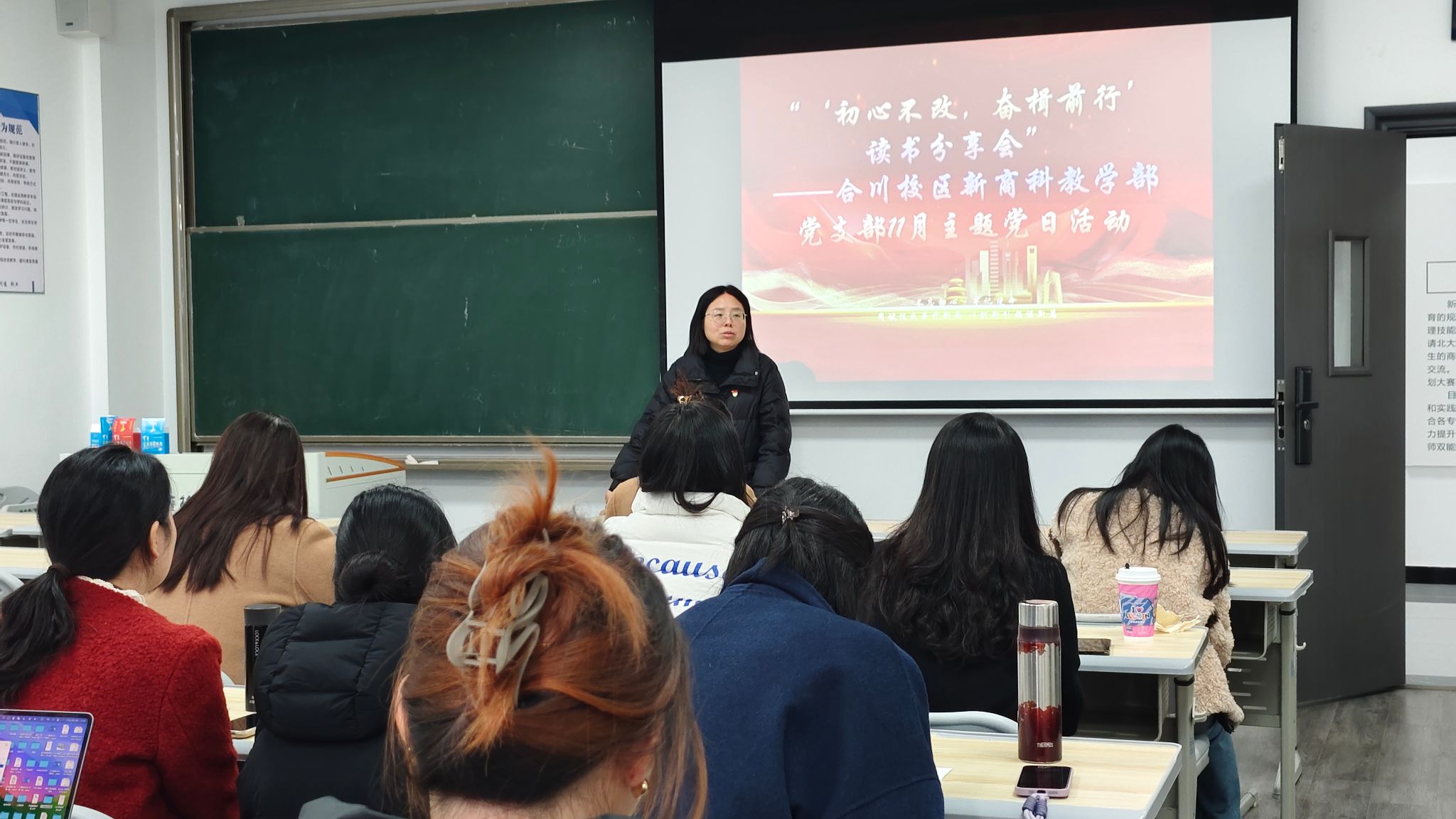 为深入学习贯彻党的创新理论,巩固拓展主题教育成果,持续推进党史学习教育常态化长效化,引导党员坚守初心使命,强化责任担当,合川校区新商科教学部党支部于11月19日下午1点,开展“初心不改,奋楫前行”主题读书分享会活动。