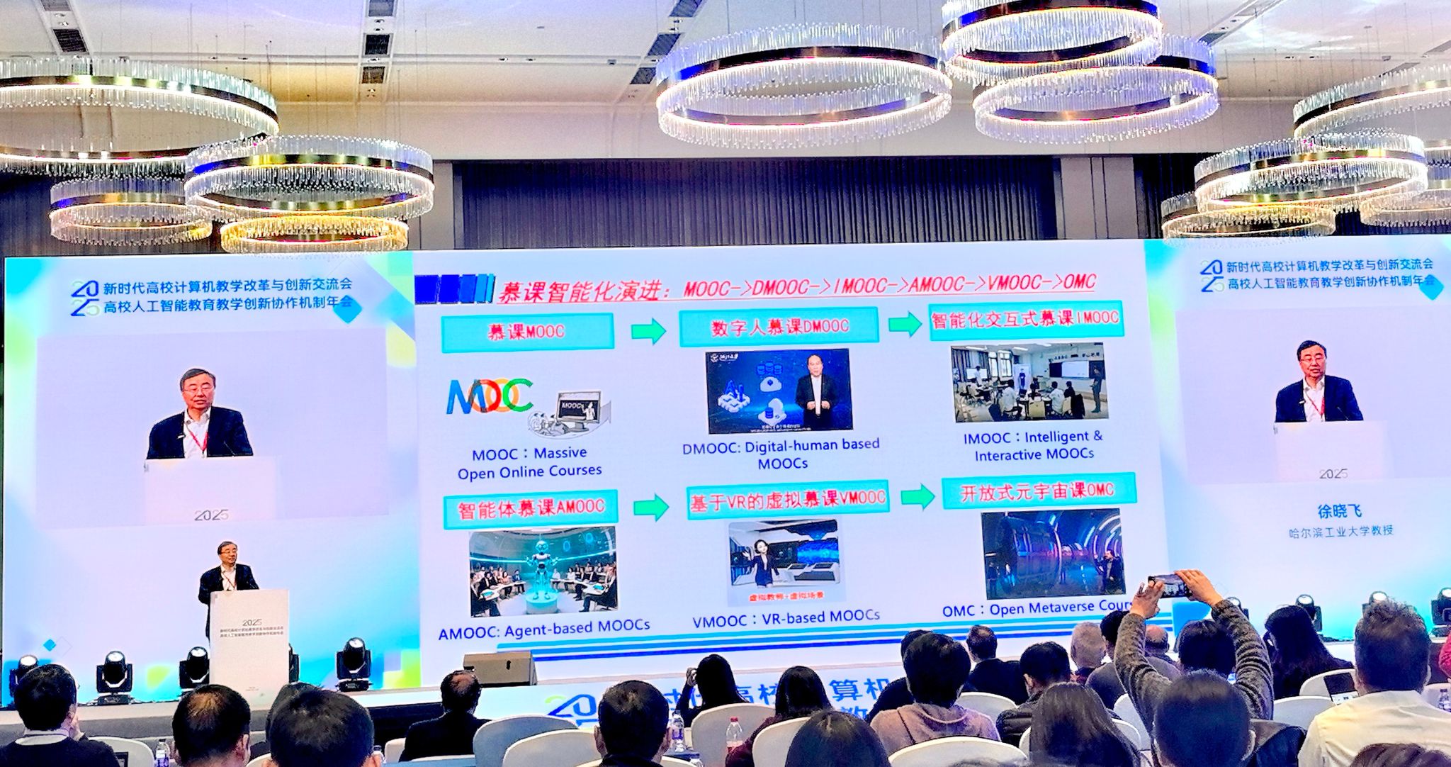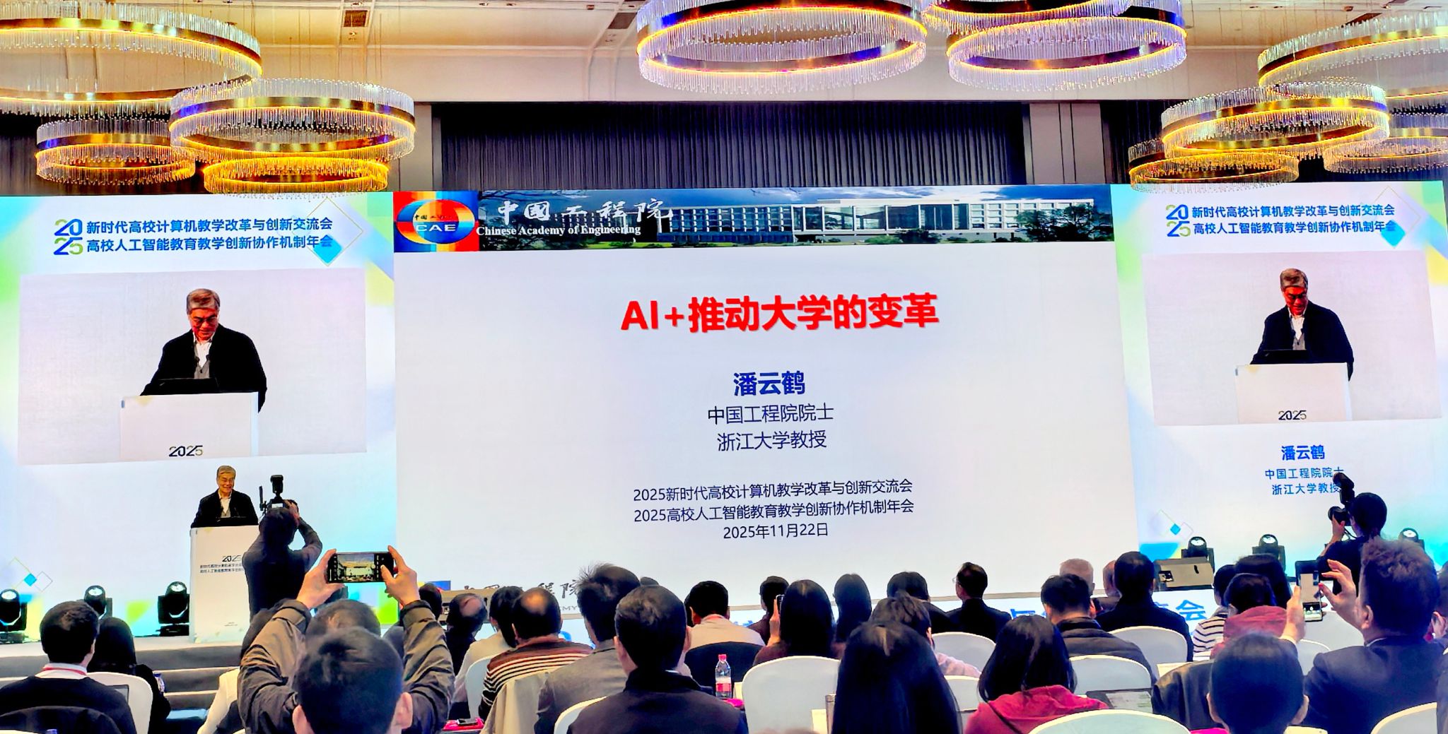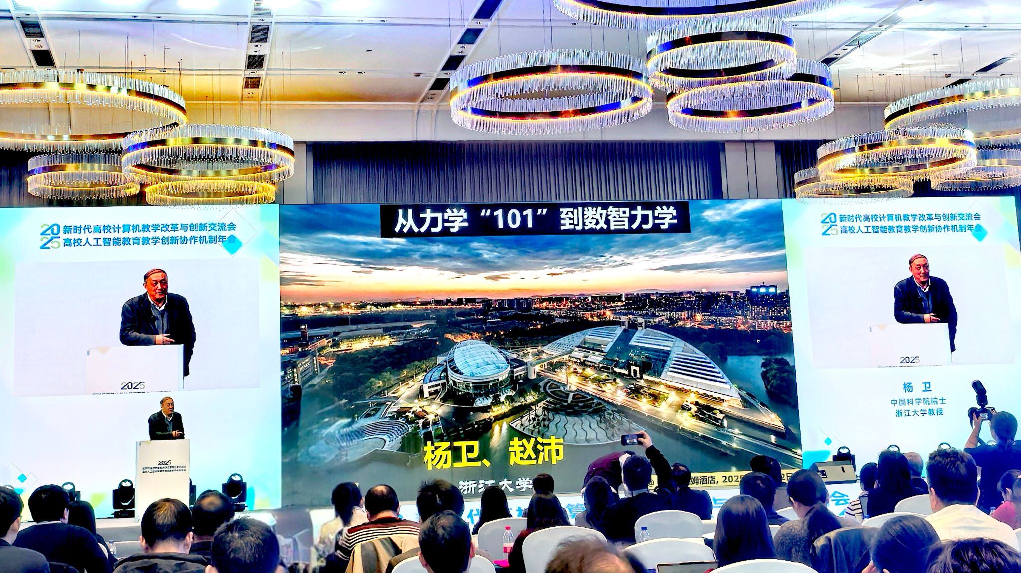 作为教育部领导下的最高教学指导专家组织,本次会议聚焦计算机教学改革与AI教育创新核心议题,云集了众多学界权威专家。中国工程院潘云鹤院士作《AI+推动大学的变革》报告,提出AI正重构高等教育“知识创造”核心逻辑,学科大模型将成为教育革新关键引擎;中国科学院杨卫院士以《从力学“101”到数智力学》为题,系统阐述力学与AI融合的教育创新理念,分享“101计划”下AI+力学教育的实践成果。