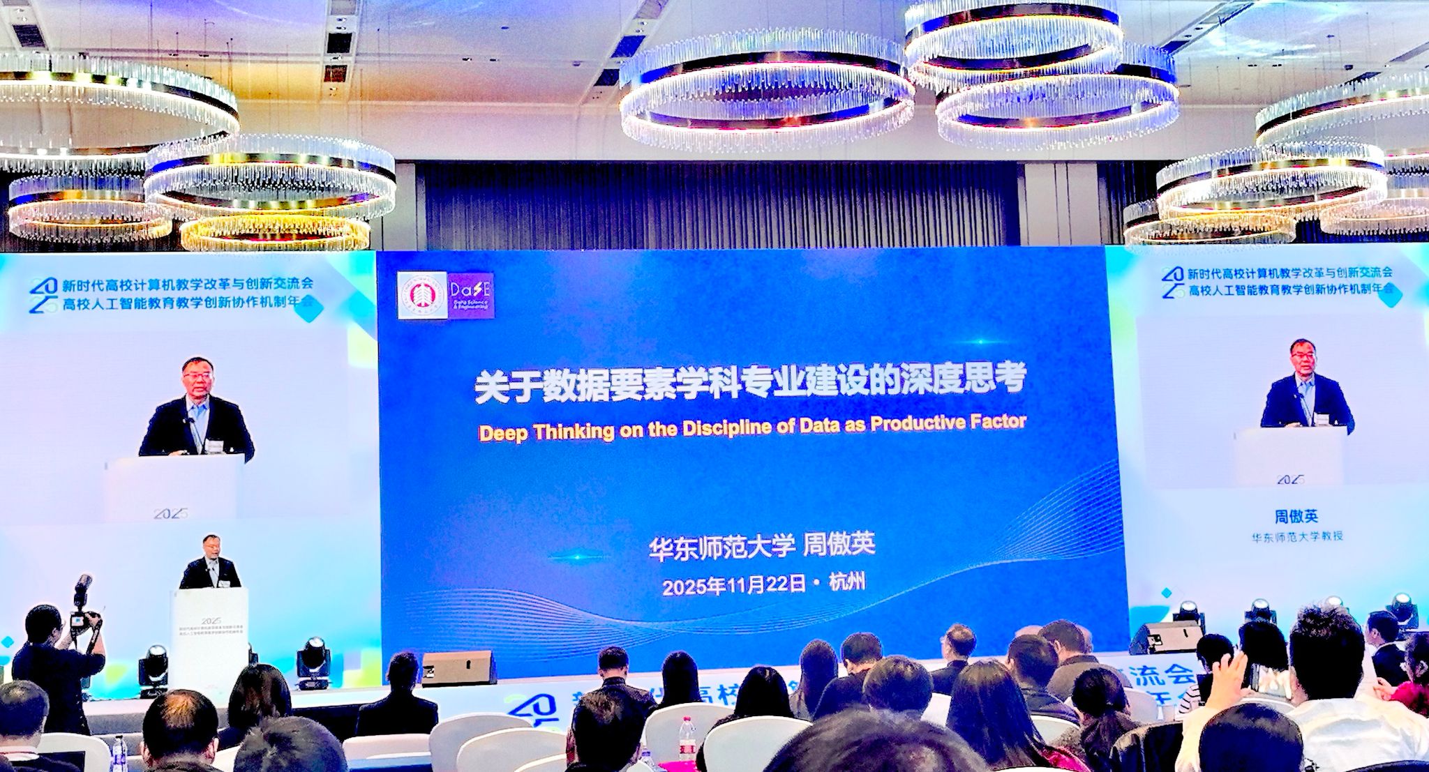 此外,哈尔滨工业大学徐晓飞教授、华东师范大学周傲英教授等专家分别围绕专业建设、课程创新等主题分享前沿观点。潘显兵教授全程参与会议研讨,深入学习AI赋能教育的最新趋势与实践路径,他表示一定把会议倡导的跨学科融合、智能教学创新等理念融入大数据学院教学改革,优化大数据、人工智能相关专业课程体系,推动科研成果向教学转化,助力培养复合型应用型人才。