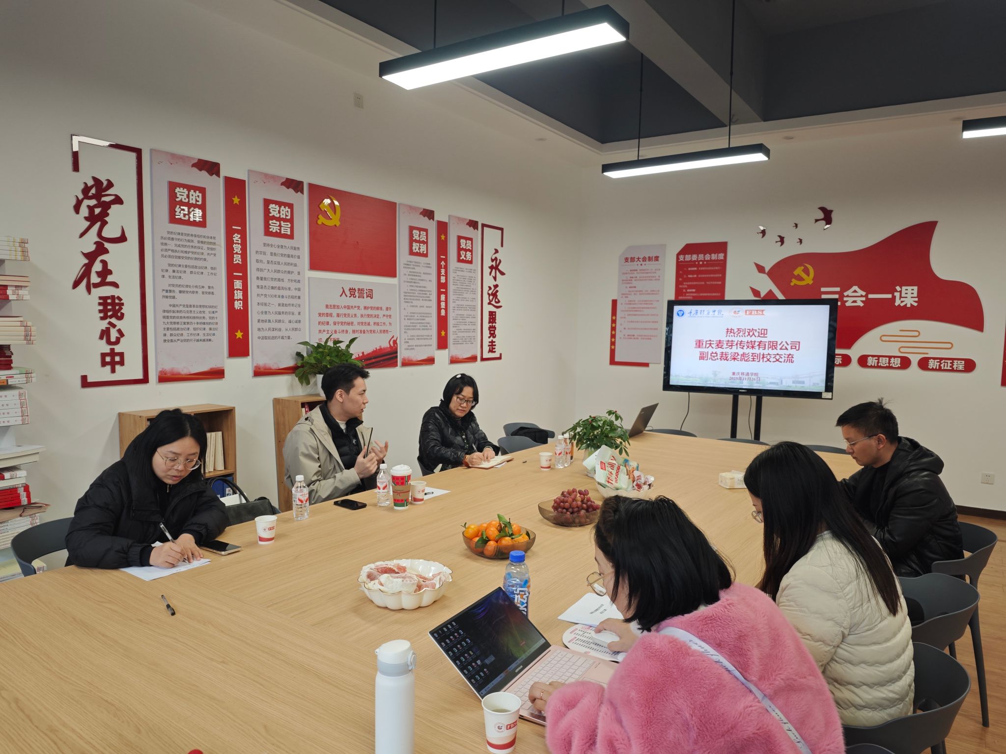 为深入贯彻落实党中央、国务院和重庆市委、市政府“稳就业,保民生”工作决策部署,根据《重庆移通学院关于开展书记校长访企拓岗促就业专项行动方案的通知》文件要求,11月26日下午,重庆麦芽传媒有限公司副总裁梁彪受邀来到重庆移通学院考察交流。淬炼商学院执行院长曾璐、副院长李义红一同接待,双方围绕人才培养、产教融合等方面内容在淬炼商学院3楼学员活动室展开深度对话。