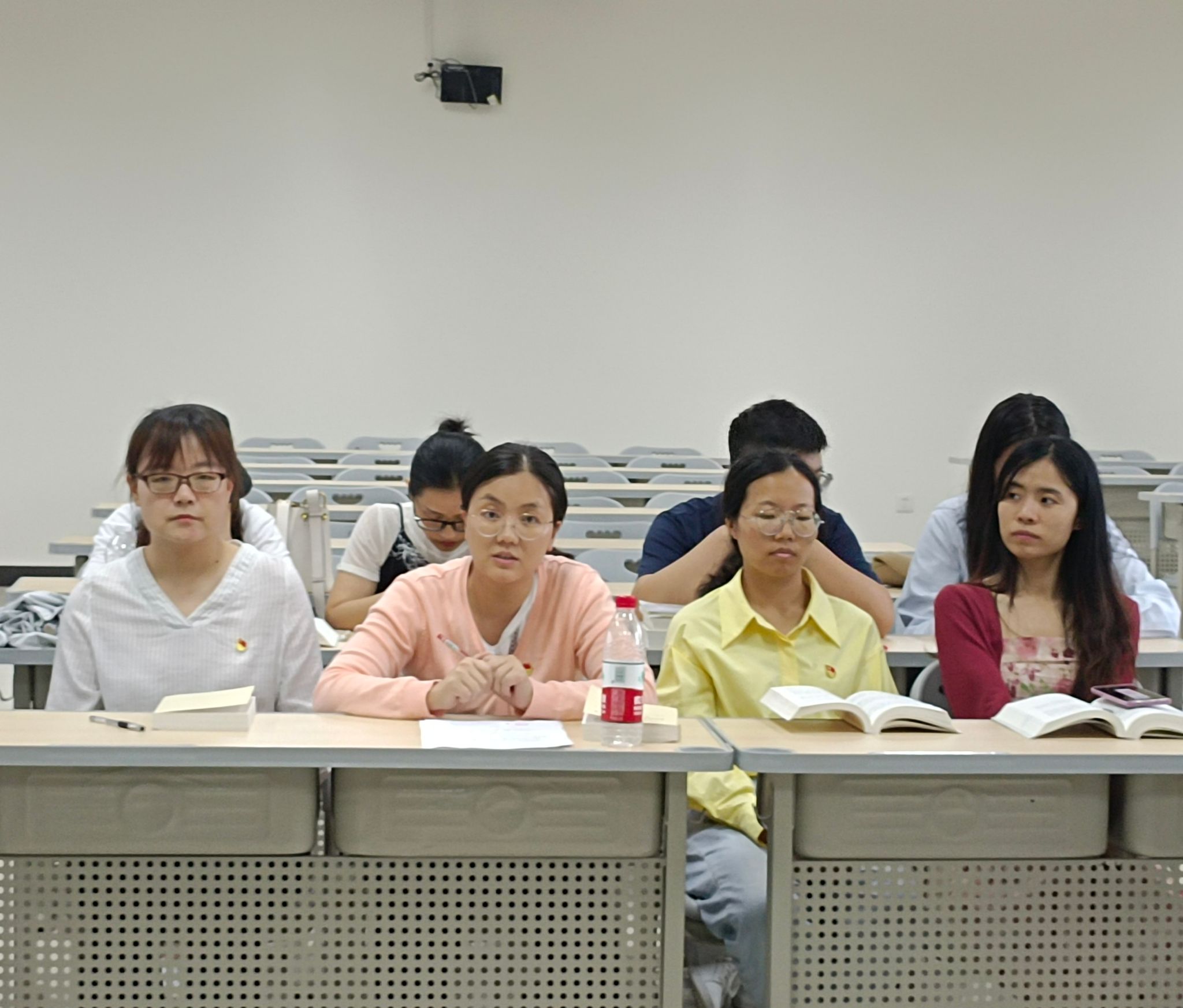 最后,支部书记刘贵容同志带领大家观看和学习了《习近平新时代中国特色社会主义思想三十讲》(第二十二讲)视频。陈锐同志和徐桂霄同志集合本次的学习内容,从专业教育创新与改革角度分享了学习心得。